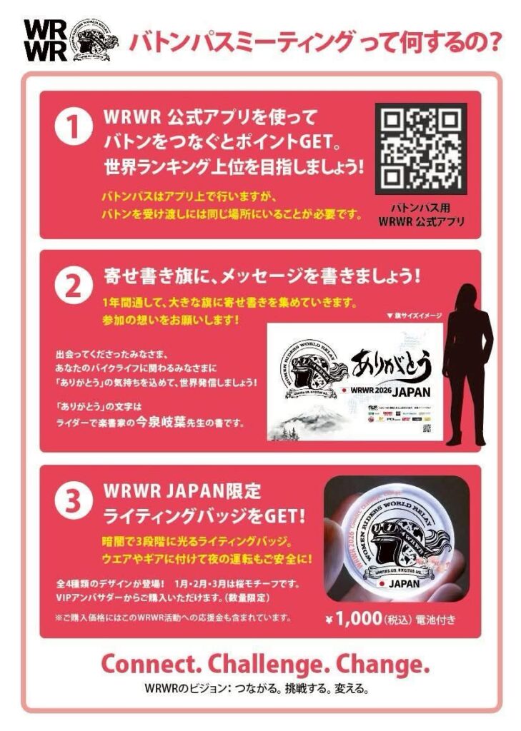 翌年の世界的なコロナウィルスの影響で中断していましたが、2026年アプリのバーチャルバトンで世界中の女性ライダーを繋ぐイベントがはじまりました。