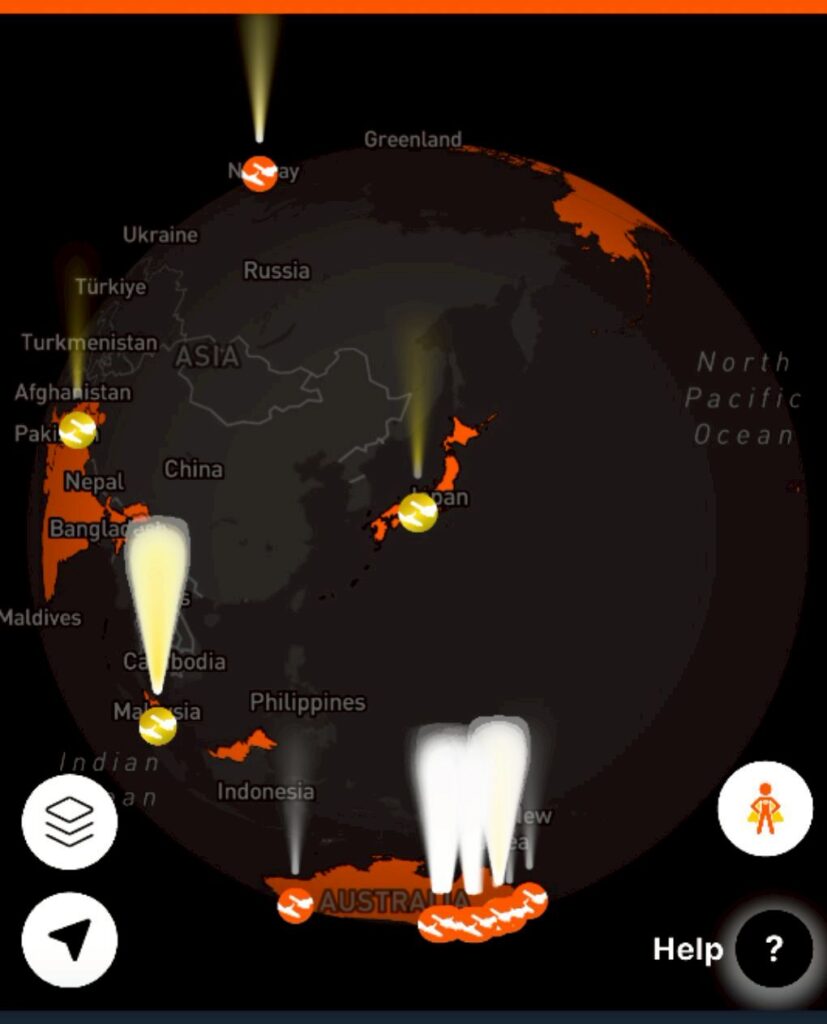 バトンパスした直後のアプリの画面です。世界中でバトンパスされてる様子が見れます。